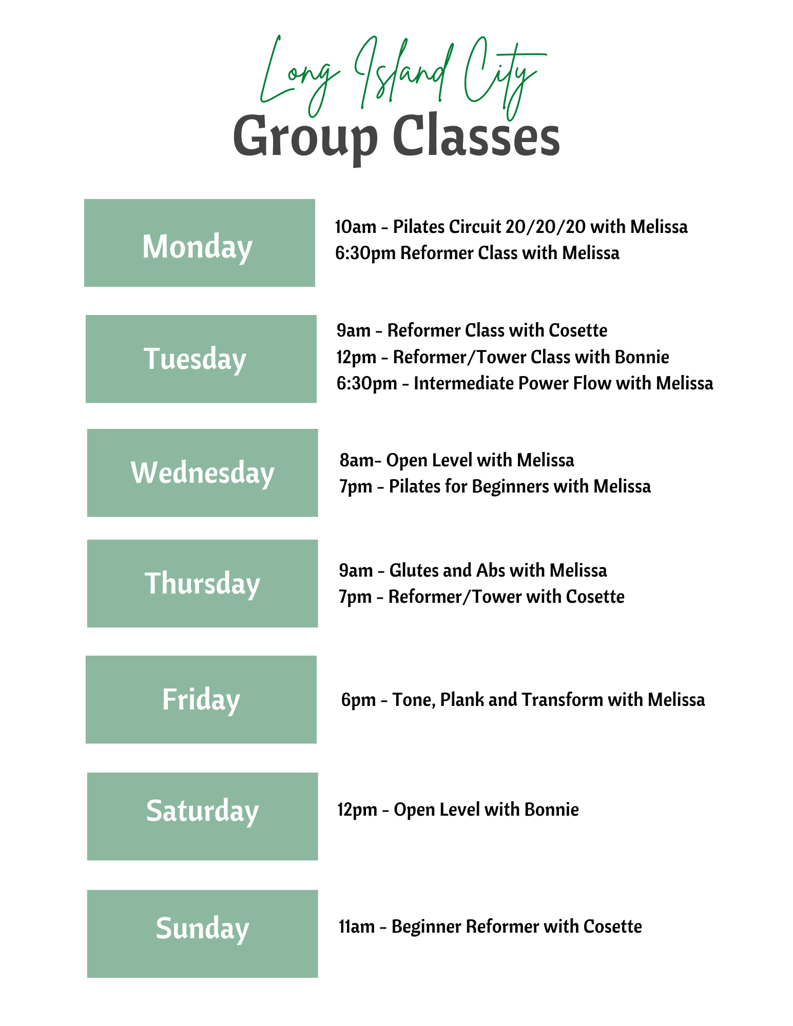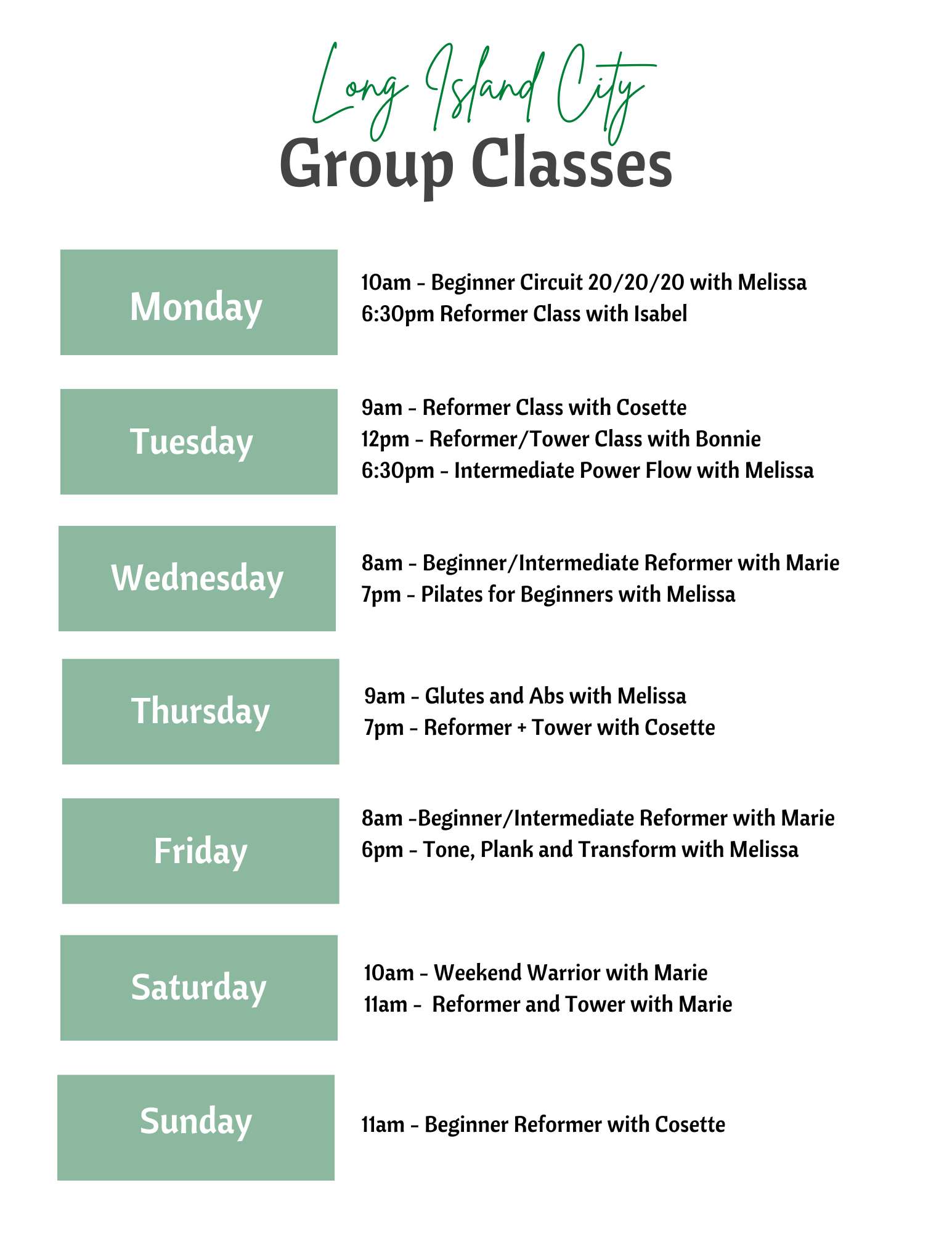This is a seriously excellent Pilates studio and terrific addition to the LIC neighborhood! The instructors are all top-notch and able to tailor classes to the students’ abilities and experience levels. I also love that the class size is kept small - so you get plenty of individual attention. An added bonus the space is beautiful! — Lauren R (Long Island City)